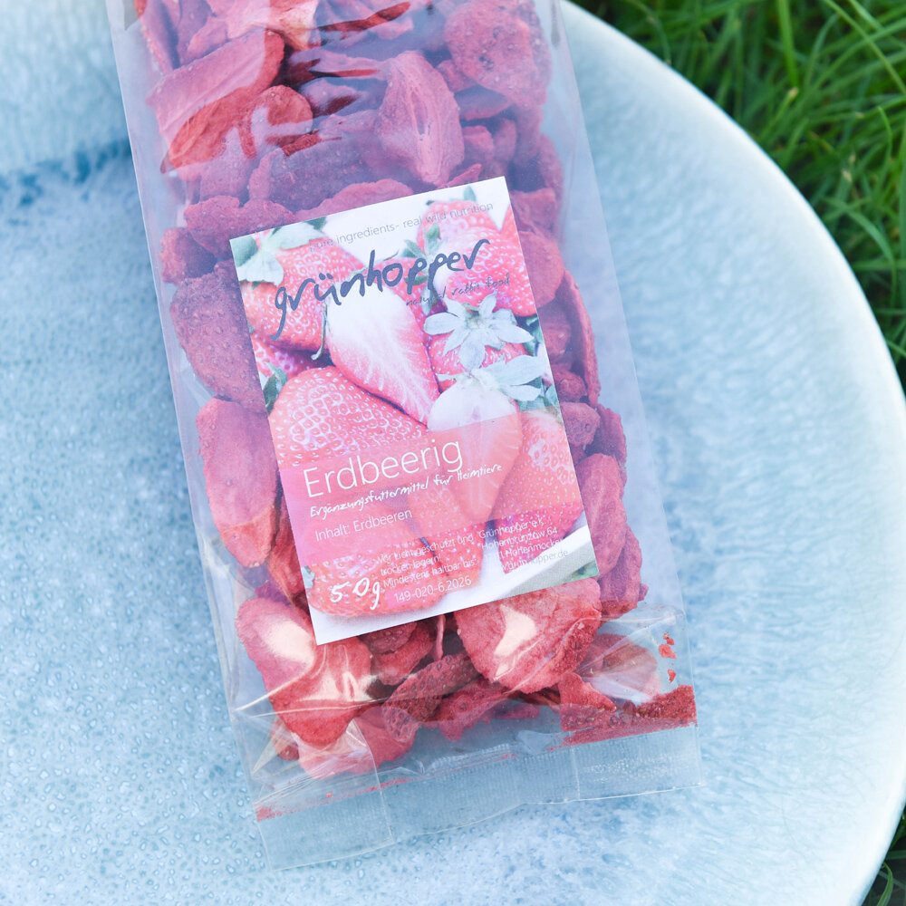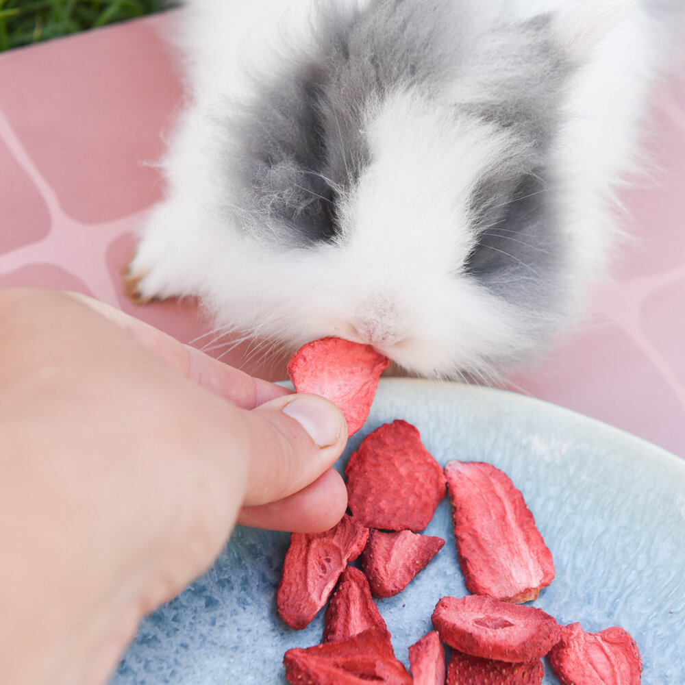 Mein Kaninchen liebt die Erdbeerringe.