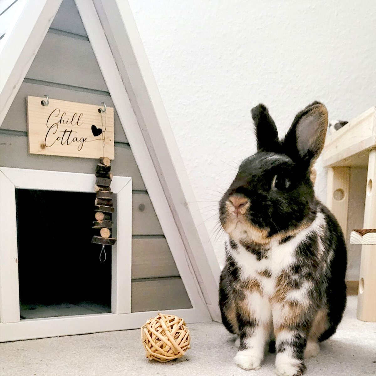 Exklusives Kaninchenhaus - nur bei uns erhältlich. Eine sommerliche Finnhütte in tollen Farben. Es hat zwei Eingänge - ein Eingang ist mit Plexiglas geschützt gegen Wind. Den Boden kann man einbauen oder entfernen, ja nachdem was ihr vorhabt.