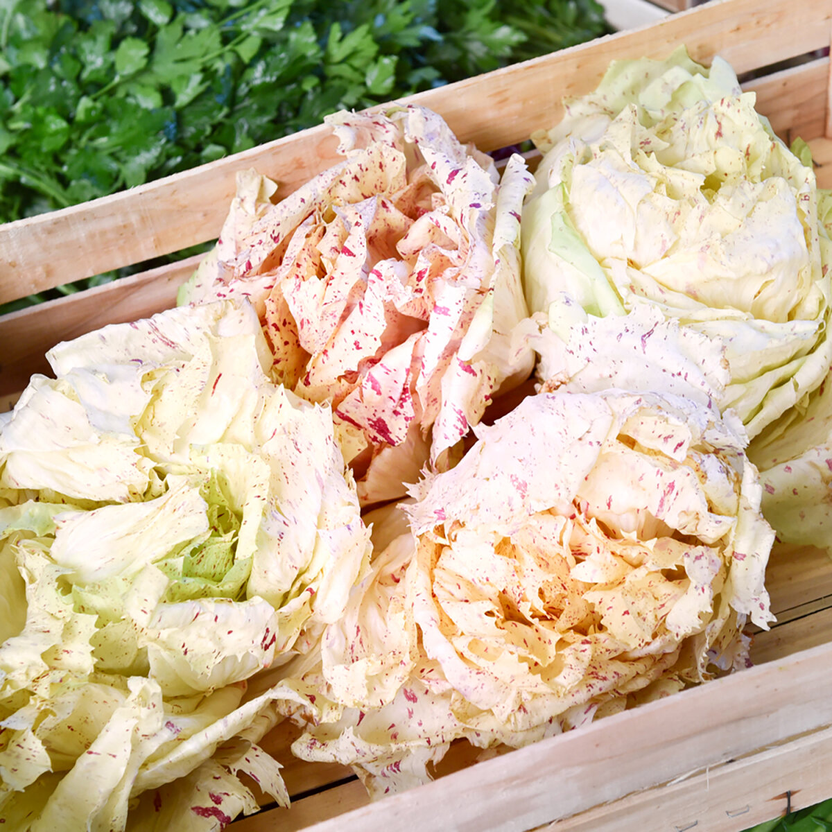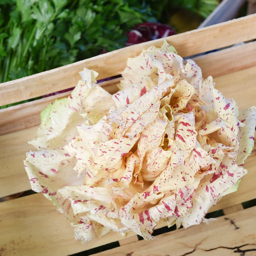 Feiner heller Bittersalat mit roten Punkten. Leicht bitterer Geschmack, von der Konsistenz so fein wie junge Blattsalat Blätter. Wenn ihr mal etwas neues probieren möchtet.