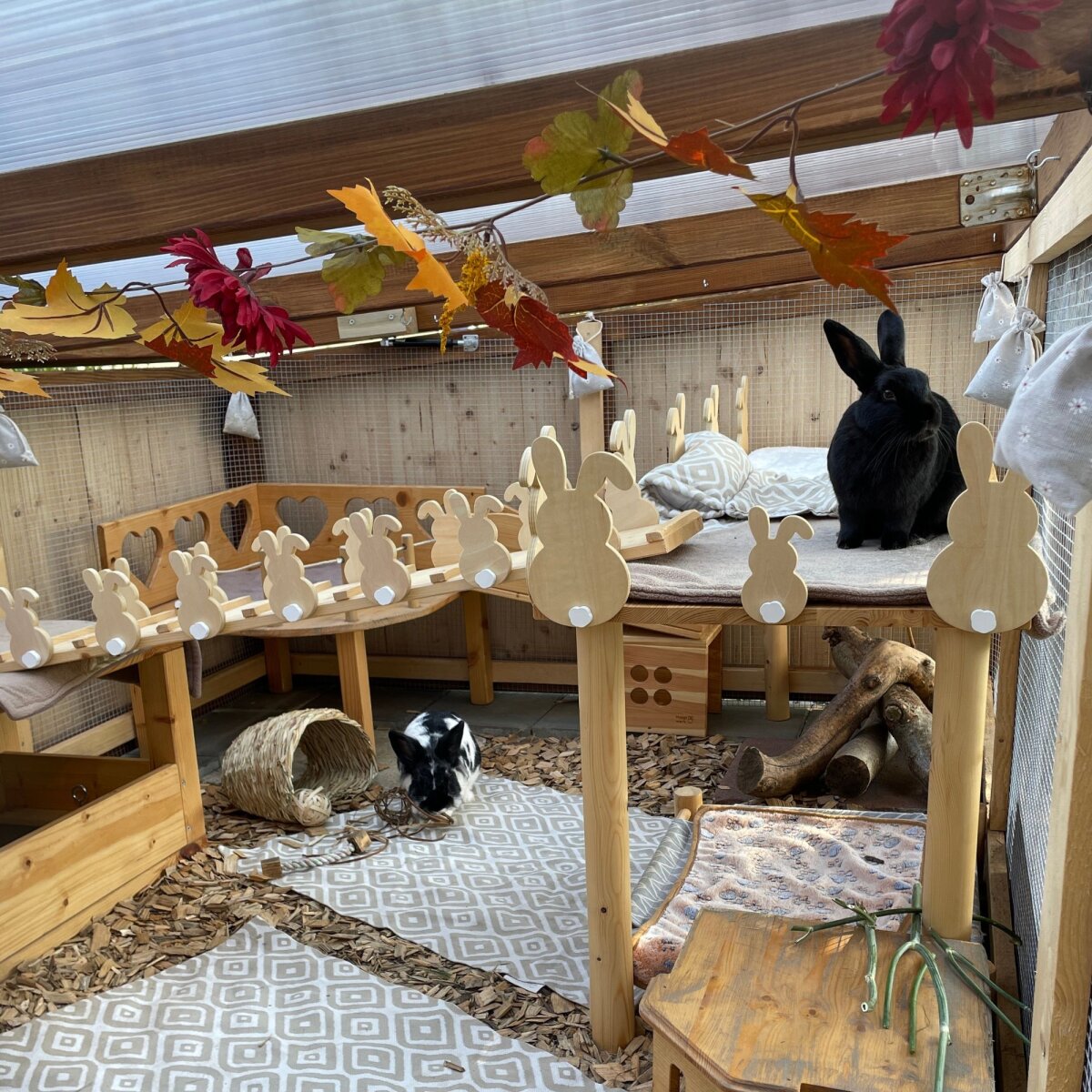 Deko Holzhasen aus massivem Sperrholz. Hiermit kannst du ganz einfach alle Holzmöbel dekorieren. Ein Loch für die Befestigung mit einer Schraube ist bereits vorbereitet. Mit dem kleinen Pummelschwanz kannst du die Schraube effektiv abdecken. Toll um Rampen, Kaninchentoiletten, Häuser, ein Bällebad oder andere Möbel zu verschönern. Exklusiver Entwurf von uns!