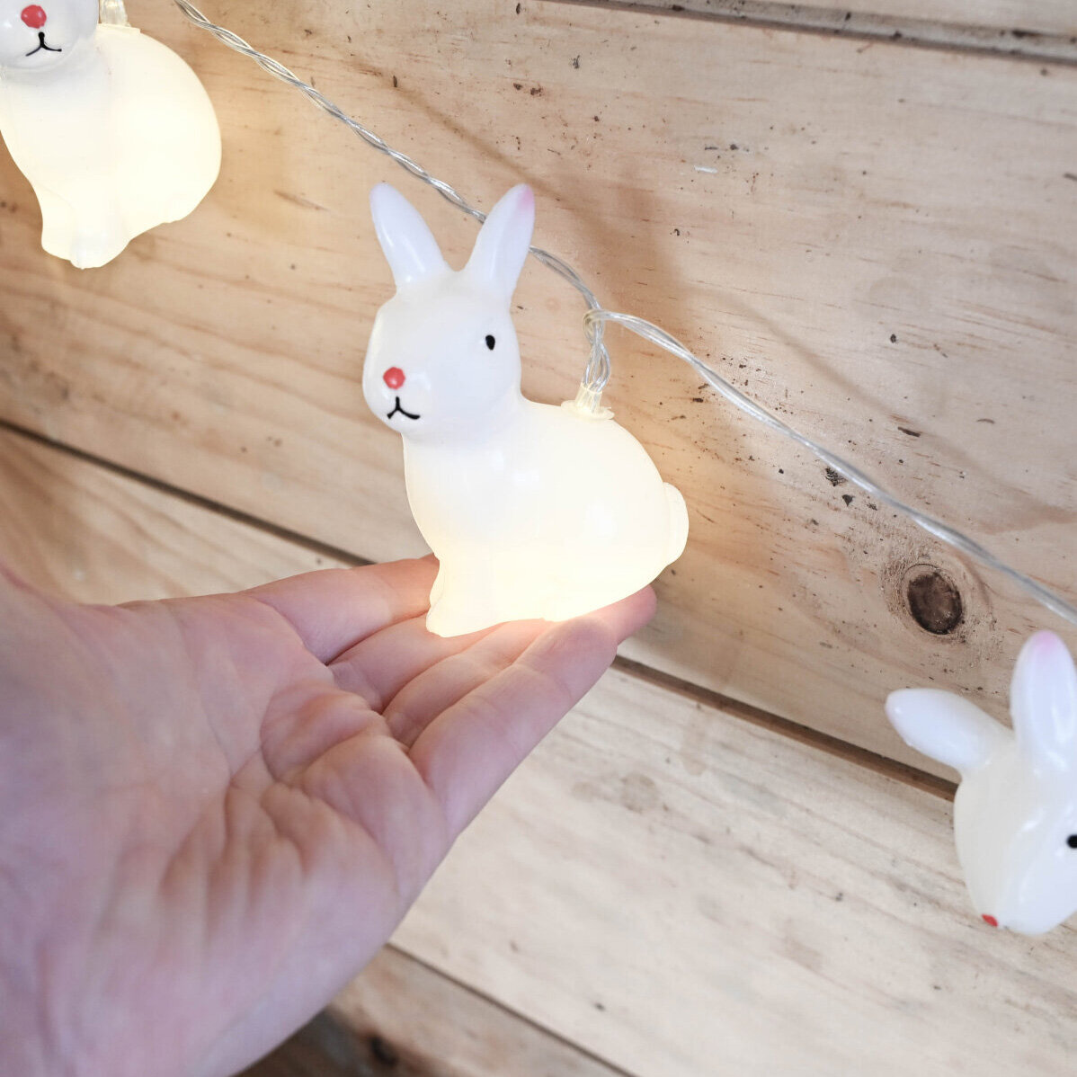 Stimmungsvolle Lichterkette mit Kaninchen.