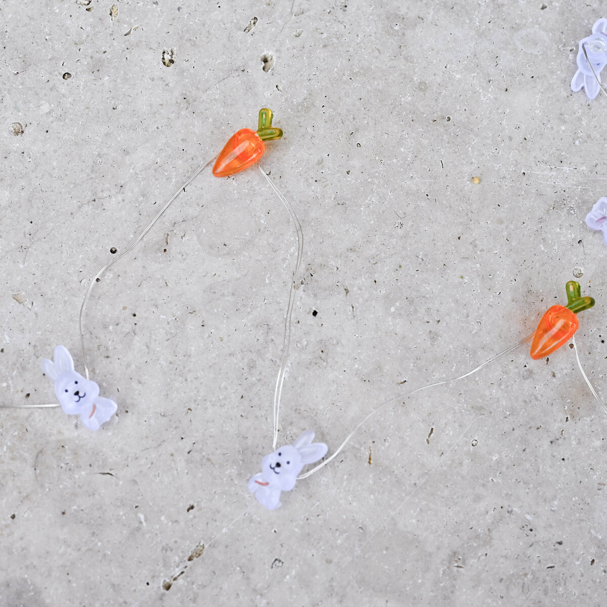 Stimmungsvolle Lichterkette mit Kaninchen und Möhren für die Winterzeit.
