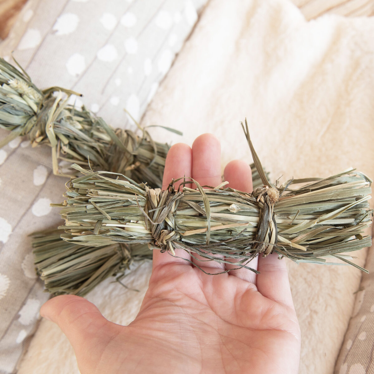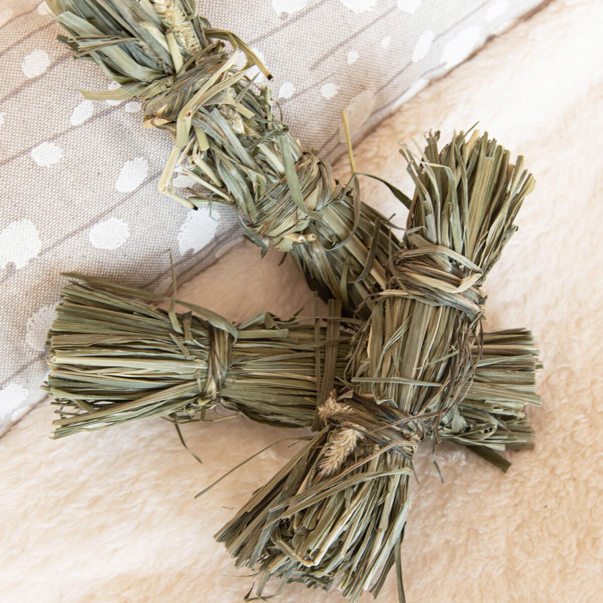 Dieses Knabberbündel vertreibt die Langeweile .Aus grünem, frischen Timothygras.