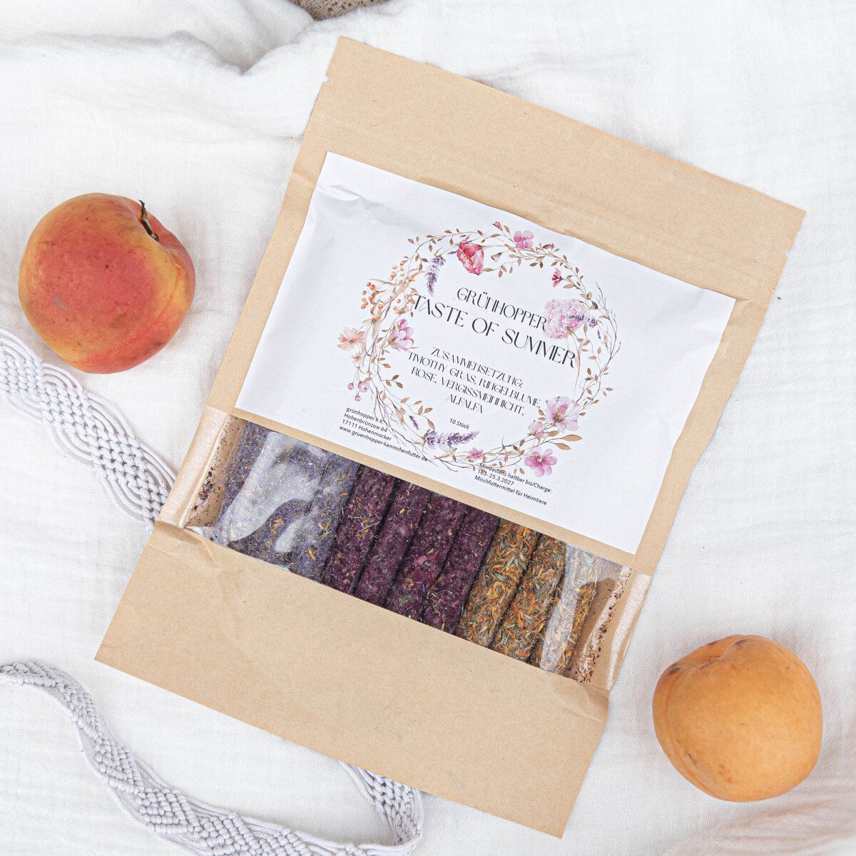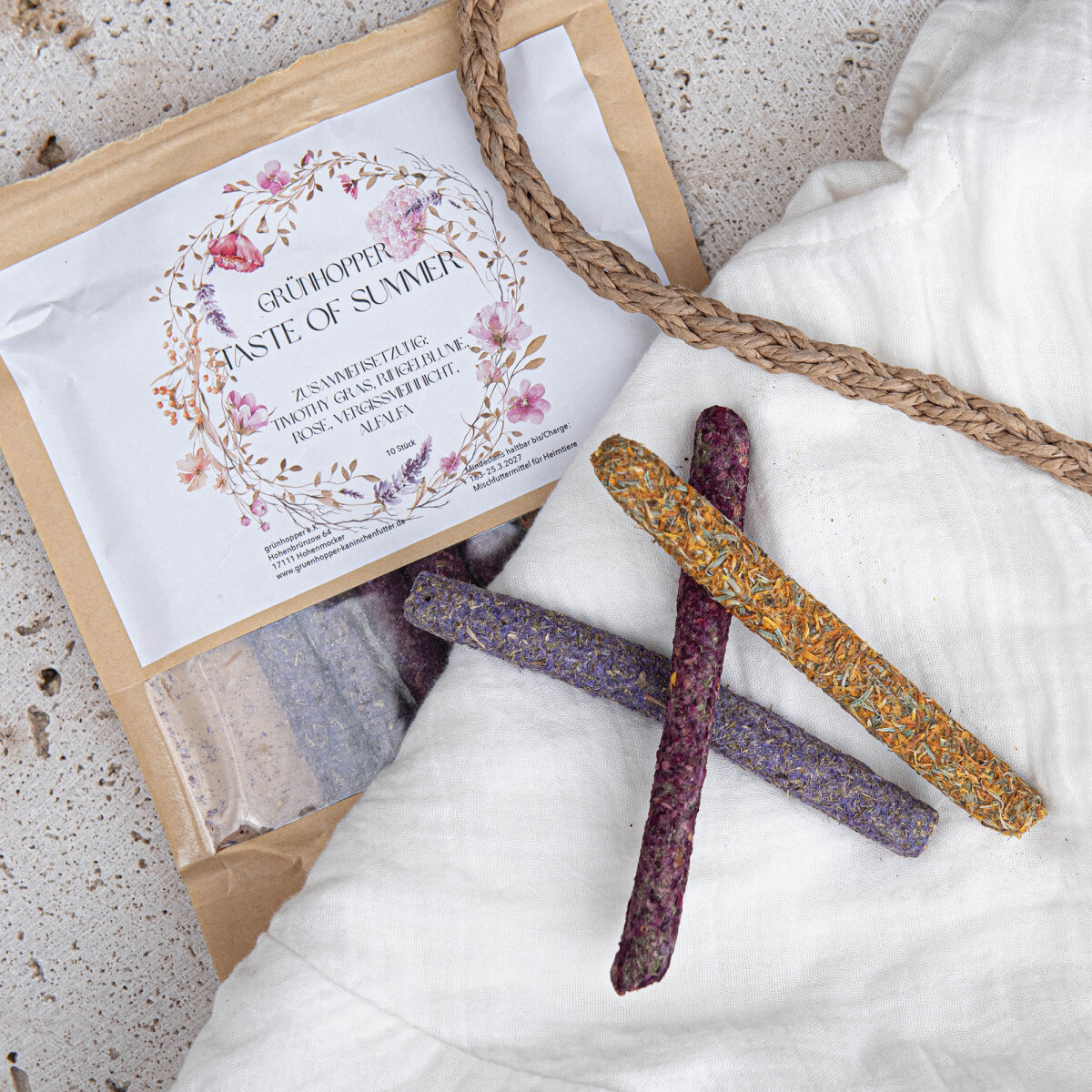 Taste of summer aus unserer Kaninchenbäckerei. Duftene Blüten sind das Topping dieser knusprigen Stangen.