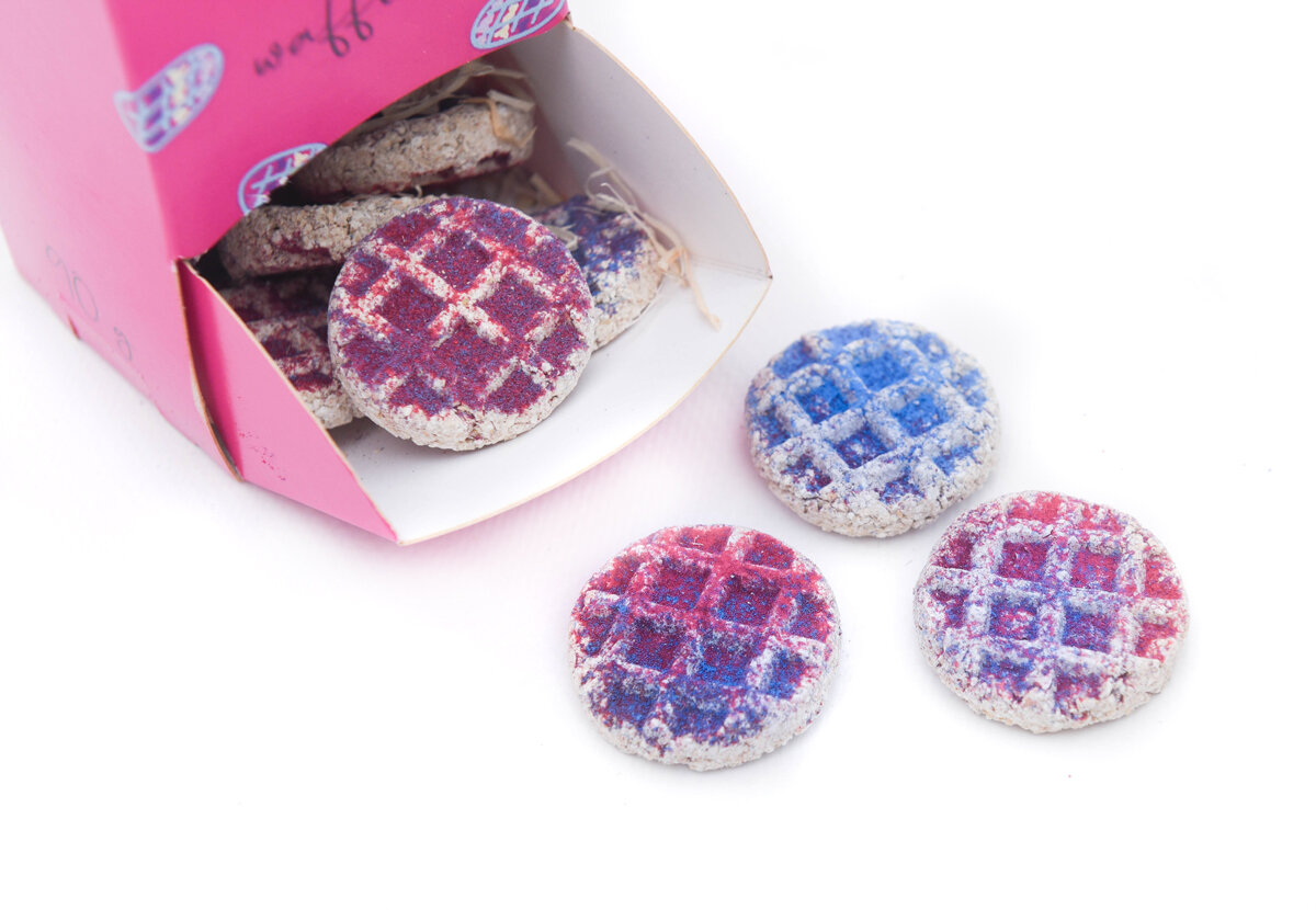 • ihre einzigartige Farbe erhalten die rainbow waffles durch die blaue Spirulina Alge