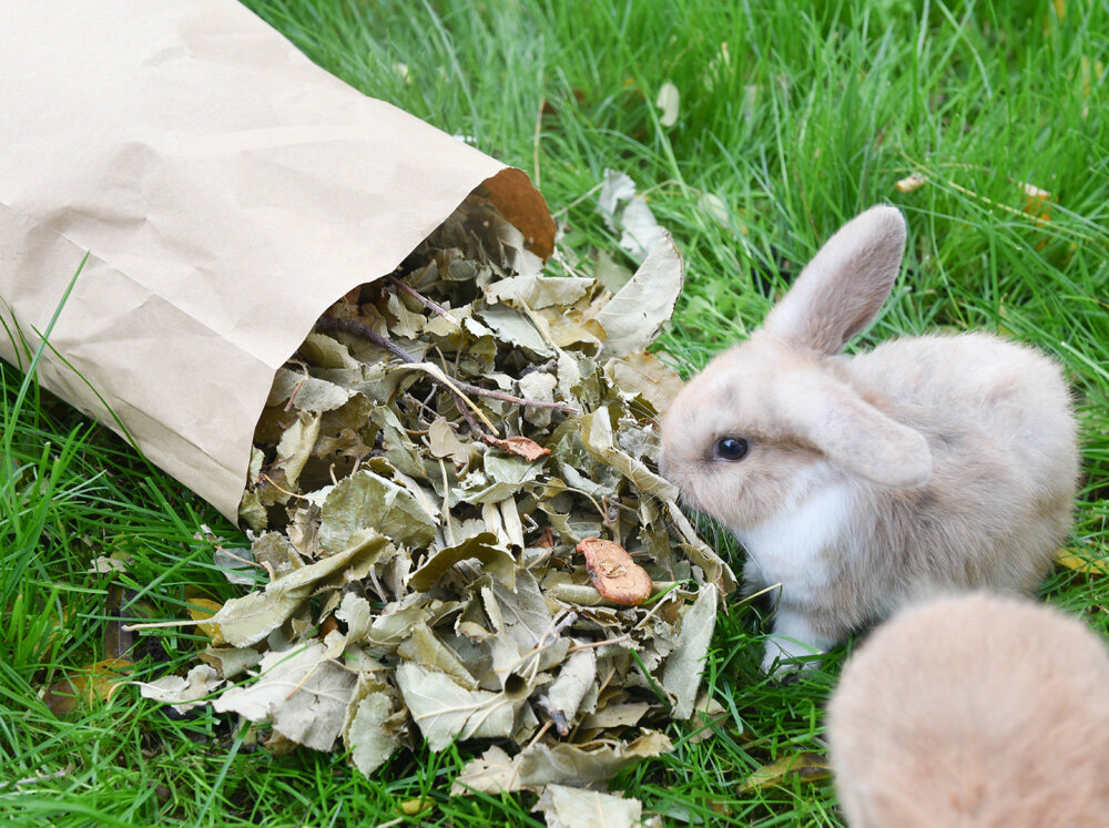 Frische Apfelblätter mit Apfelscheiben - ein Hochgenuss für alle Kaninchen.