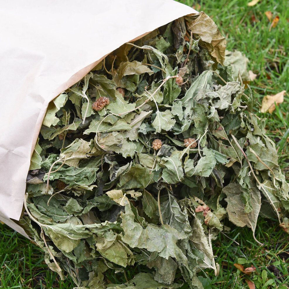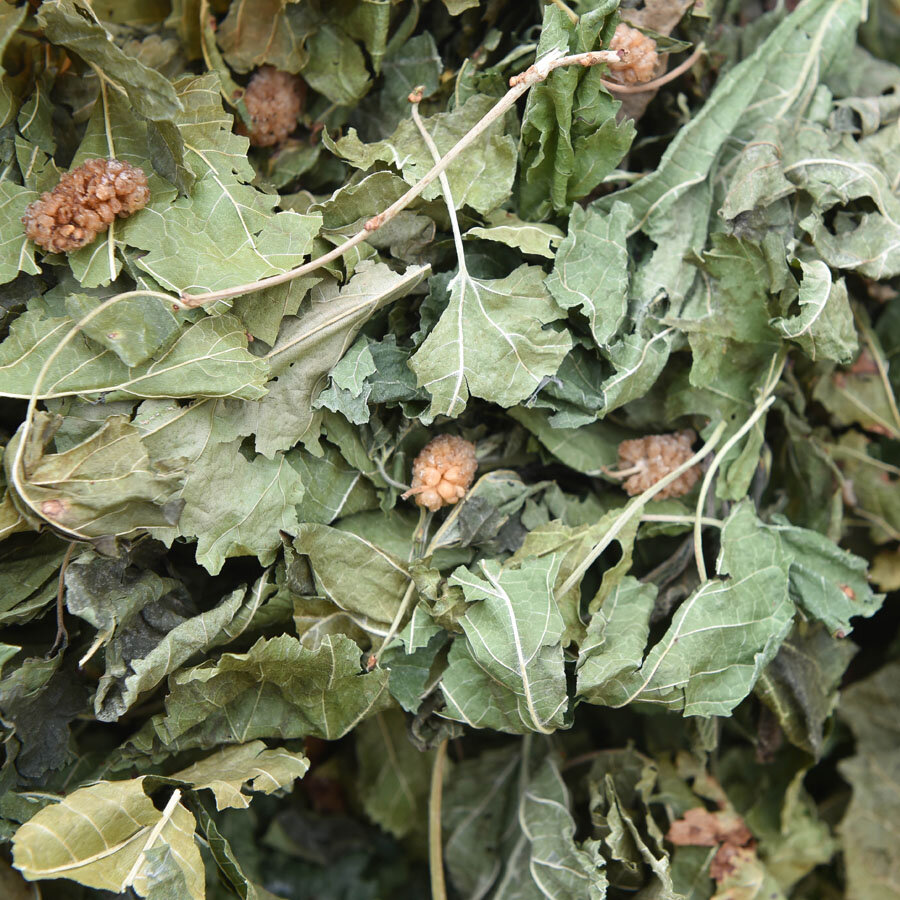 Maulbeerblätter mit Maulbeerfrüchte. Kalziumarm und perfekt für die tägliche Fütterung geeignet.