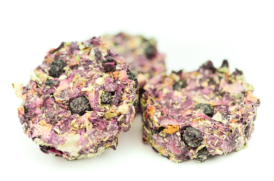 Nicht nur für nachtaktive Hoppler! 3 aromatische Taler mit Rosenblüten und Aroniabeeren.
